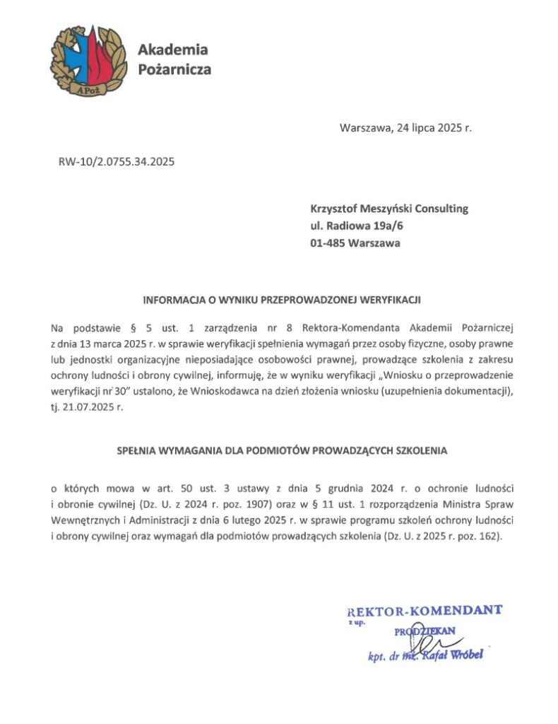 Meszyński Consulting to polska firma ekspercka świadcząca wyspecjalizowane usługi doradcze, szkoleniowe i audytowe na rzecz sektora publicznego oraz kluczowych przedsiębiorstw o strategicznym znaczeniu dla bezpieczeństwa państwa. Naszą misją jest budowanie odporności instytucji w wymiarze organizacyjnym, operacyjnym i systemowym.